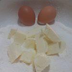 - Prepara la pasta frolla lavorando il burro (a temperatura ambiente) con 120 gr. di zucchero, poi unisci le uova e amalgama il tutto. Aggiungi la farina setacciata, il lievito, la scorza grattugiata di un limone, un pizzico di sale e impasta rapidamente.